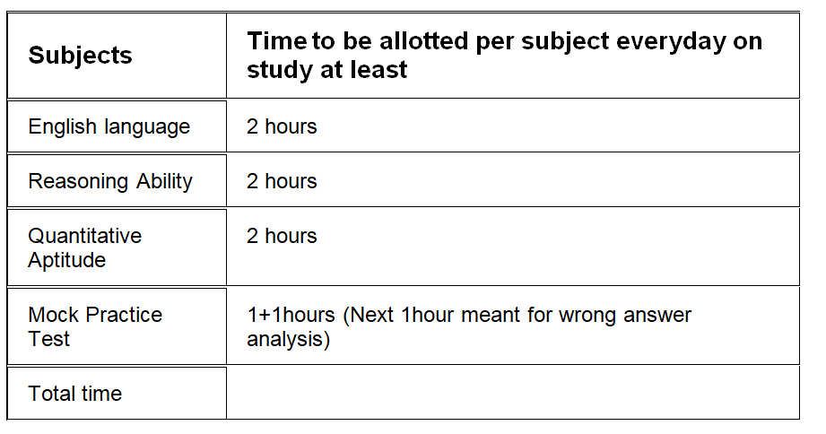 Hence, from the table, you can see that in English Section, Quantitative Aptitude Test Section and Reasoning Ability Test Section ie; from all these sections each question carries one mark each. But if talk about the time to be allotted to every sections, it can be distributed as 20 minutes each in general. But, here it is very important that you have to assess your strength and weakness in each section Individually. For example, If a particular candidate Mohan is strong in Quantitative Aptitude then he must keep minimum time allotted for Quantitative Aptitude section and save some time due to his command on this section and utilize this saved time on other weak sections according to his strength and weakness.