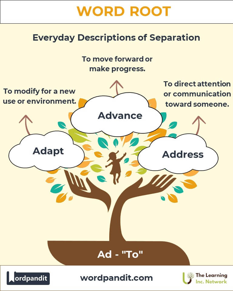 The root "Ad" continues to guide and inspire language, symbolizing motion and purpose across disciplines. Whether directing actions, adhering to values, or advancing goals, "Ad" unites us in our journey toward achievement. Explore its depths, and let it propel your understanding forward!