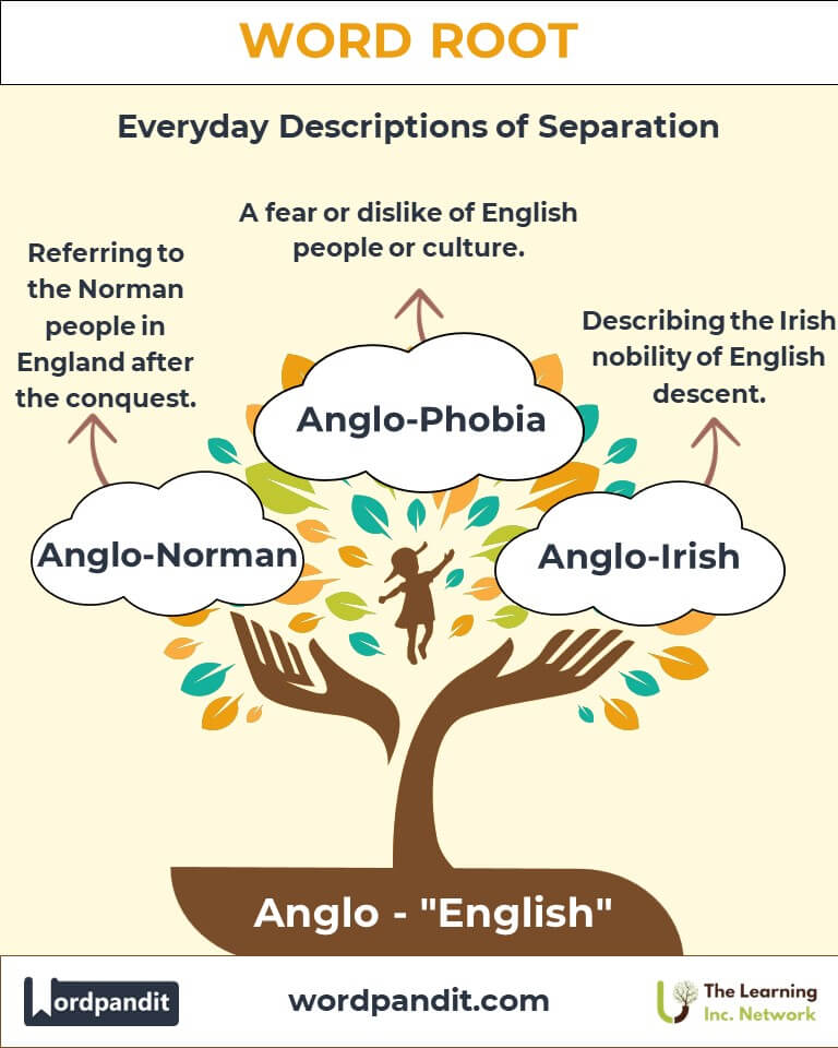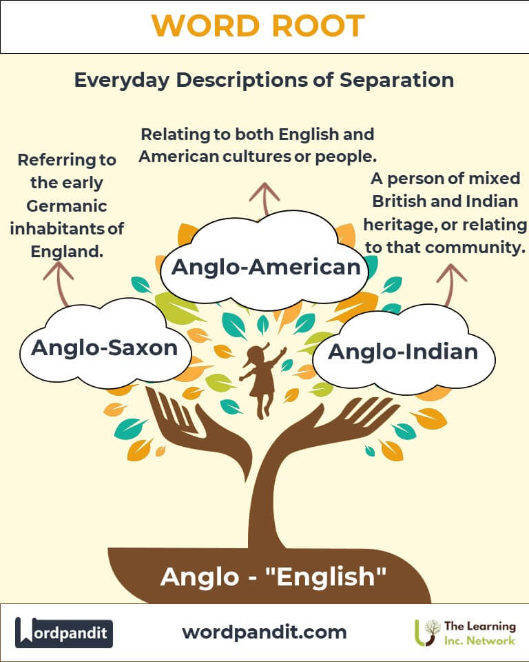 The root "Anglo" originates from the Latin Angli, referring to the Angles, a Germanic tribe central to England's history. Today, "Anglo" represents English identity, culture, and influence, appearing in terms like "Anglo-Saxon," "Anglophile," and "Anglosphere." Its evolution reflects the enduring impact of English traditions on global narratives.