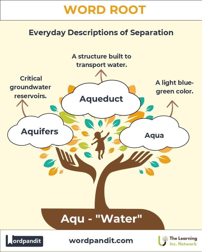 Discover the essence of the root "Aqu," derived from the Latin word for "water." From aquatic ecosystems to the life-sustaining properties of aquifers, "Aqu" flows through our vocabulary, connecting the natural world to scientific and everyday language.