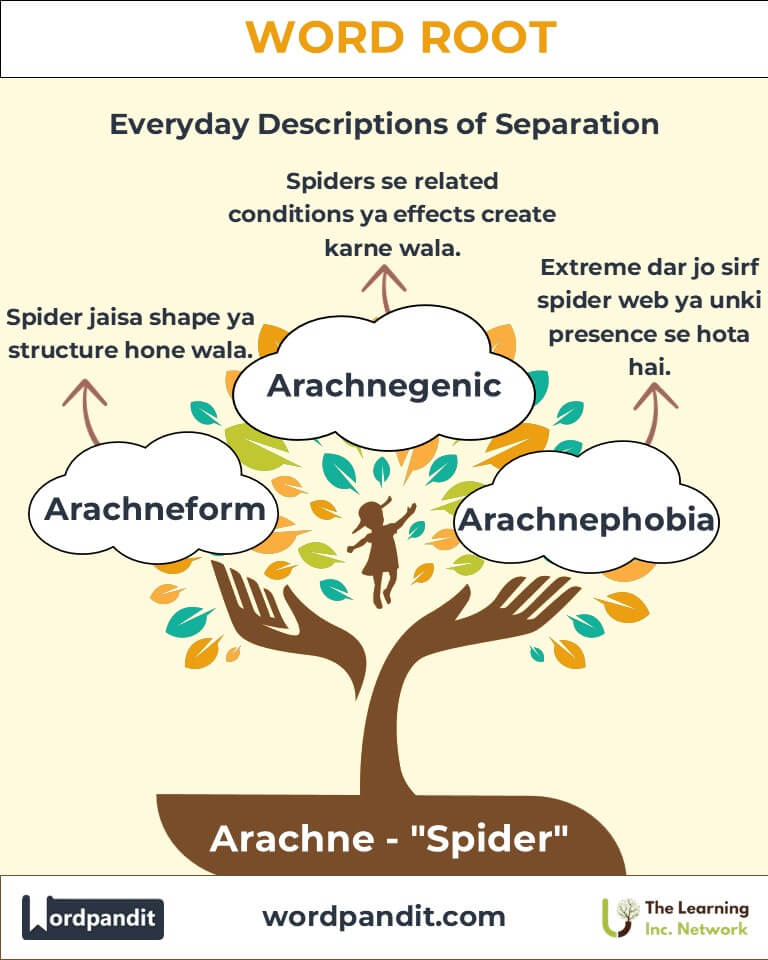 Arachn (pronounced uh-RAK-n) is a root derived from the Greek word aráchnē, meaning "spider." It has crept into words that describe the intricate, the fearful, and the biological. From the scientific study of arachnids to the fear of spiders, this root weaves a web of fascinating applications. But its significance extends beyond biology—it’s rooted in myth, psychology, and even art.