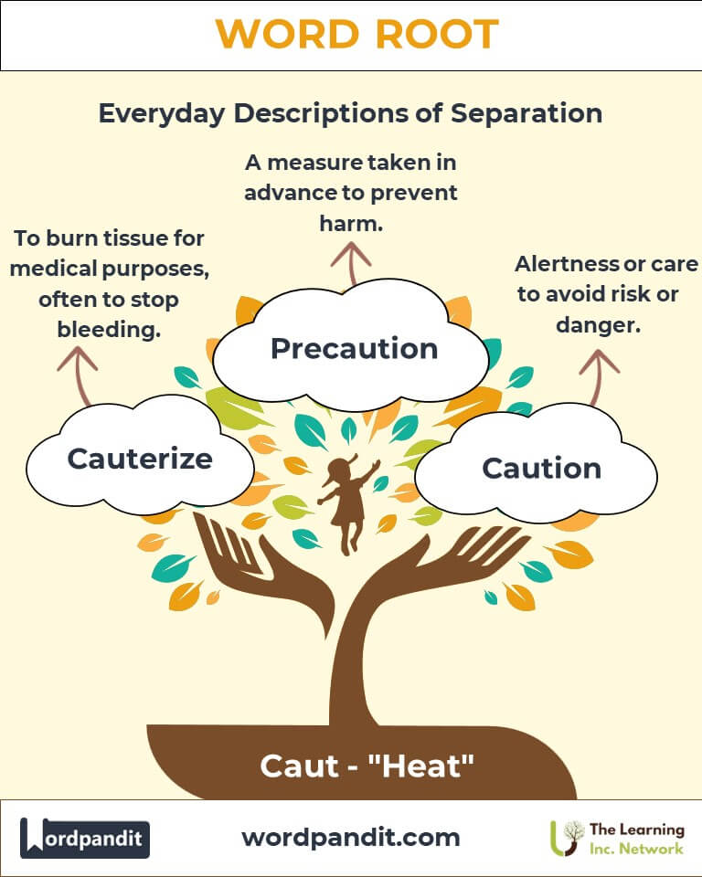Have you ever considered the connection between heat and caution? The Latin root "Caut", pronounced (kawt), embodies both the physical and metaphorical power of heat. Found in words like cauterize, which uses heat for healing, and cautious, which advises prudence, "Caut" reminds us of the transformative and protective qualities of fire and warmth.
