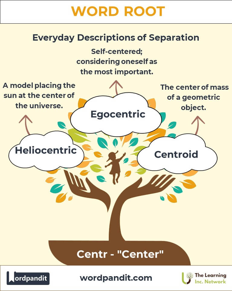 Maya, a budding astronomer, was captivated by the concept of the heliocentric model. While preparing for a school presentation, she realized that the idea of placing the sun at the center was not just about astronomy—it also symbolized focusing on the bigger picture. Inspired, she used the root centr to structure her talk, emphasizing how staying "centered" allows us to find balance, whether in science or life.
