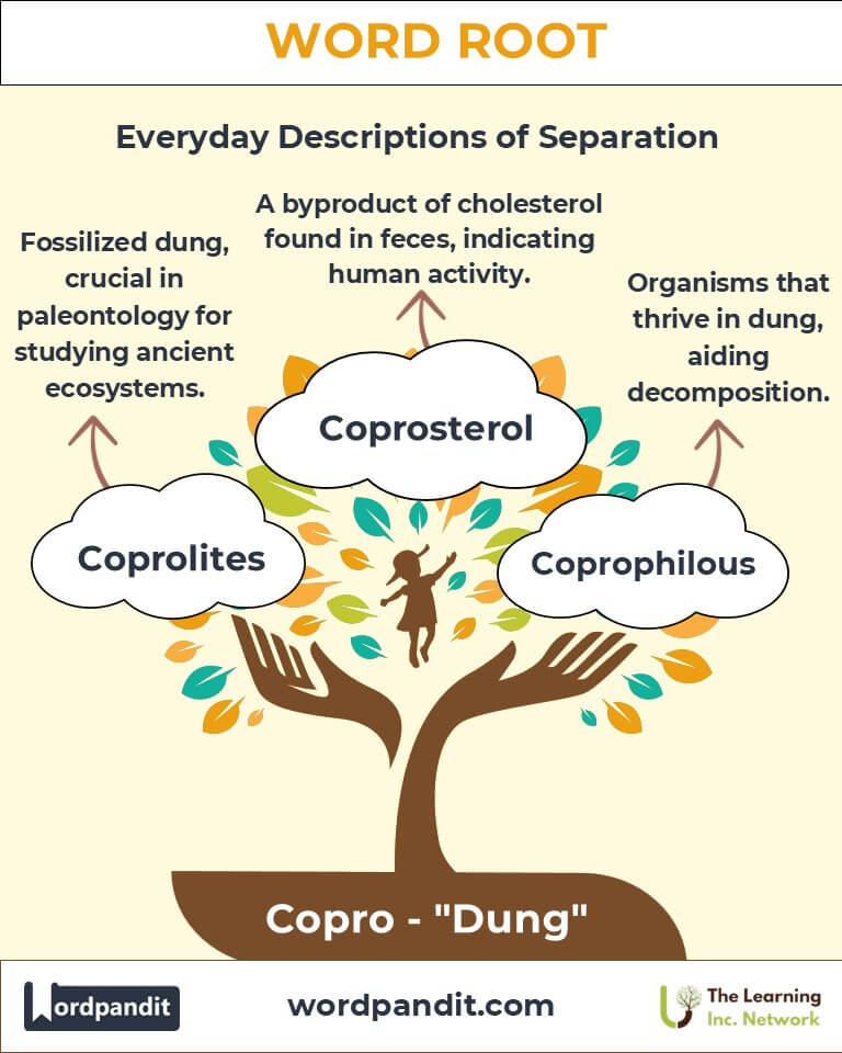 What connects prehistoric creatures and waste-loving insects? The answer lies in the root "copro," meaning "dung." Pronounced as ko-proh, this root gives life to words like coprolite (fossilized dung) and coprophagous (dung-eating organisms), showcasing the importance of decay in the circle of life. From ancient ecosystems to modern science, "copro" has remained a symbol of transformation.