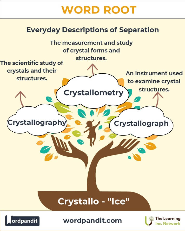 Discover the fascinating world of the word root "crystallo," derived from the Greek word krustallos, meaning "ice" or "crystal." Found in terms like "crystalline" and "crystallography," this root beautifully reflects the mesmerizing forms and intricate structures found in nature and science.