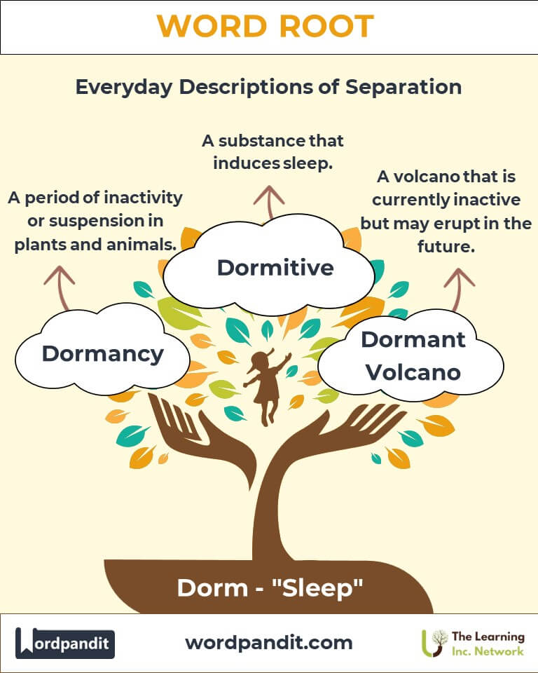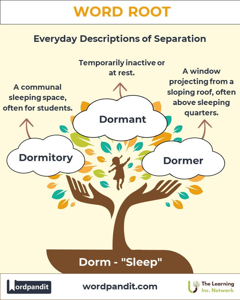 The root "Dorm" reminds us of the vital role rest plays in life. From seeds lying dormant to students resting in dormitories, it reflects the universal need for rejuvenation and potential waiting to be unleashed. As language evolves, "Dorm" continues to symbolize the tranquil balance between rest and action, inspiring us to appreciate the cycles of activity and repose in our own lives.