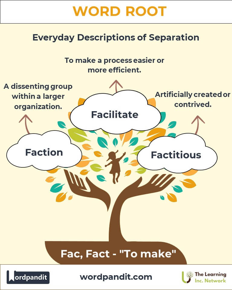 Example: "The party was divided into factions with differing opinions on policy." - Facilitate: To make a process or action easier or smoother.