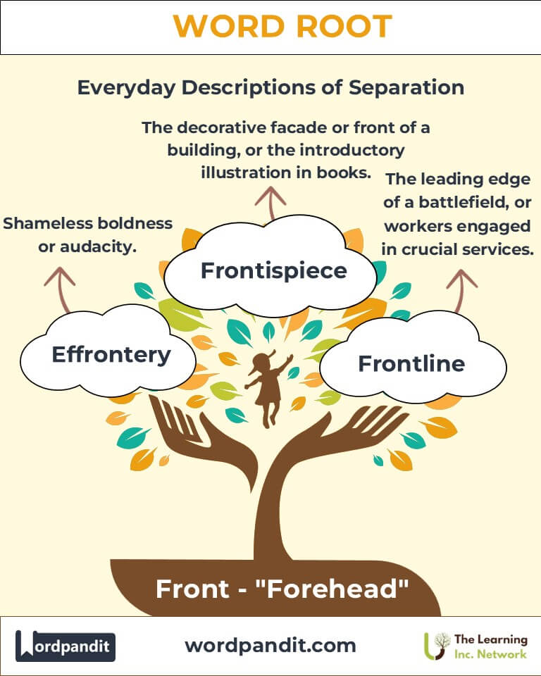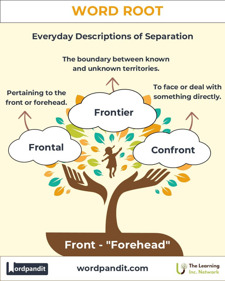 A: Not always. While the root front originates from “forehead,” its metaphorical and linguistic expansions include concepts like forwardness, boundaries, and leadership. For example, “frontier” relates to unexplored territories rather than the forehead itself.