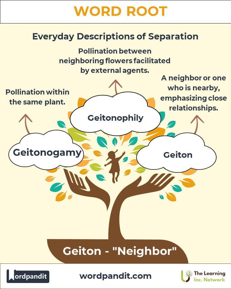 Discover the significance of the word root "geiton," derived from Greek, meaning "neighbor." From biological phenomena like geitonogamy to the interplay of proximity in culture and language, "geiton" offers insights into the interconnectedness of living and linguistic systems.