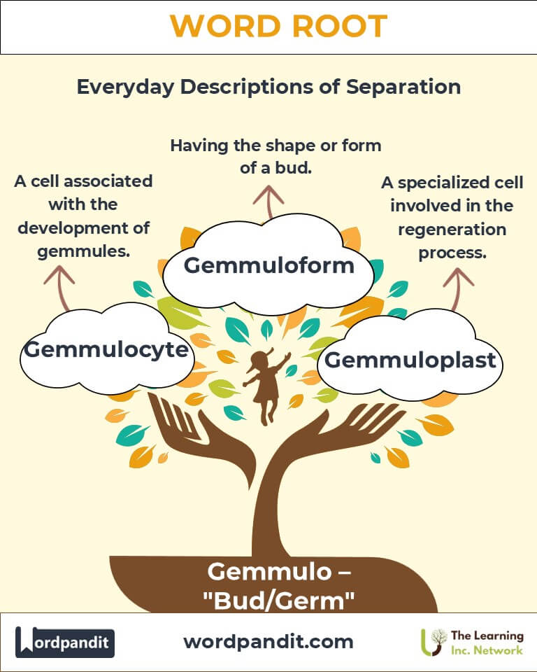Dive into the fascinating world of the word root "gemmulo," derived from Latin, meaning "bud." Found in terms like "gemmule" and "gemmation," this root encapsulates the concepts of budding, growth, and regeneration across biology and beyond.