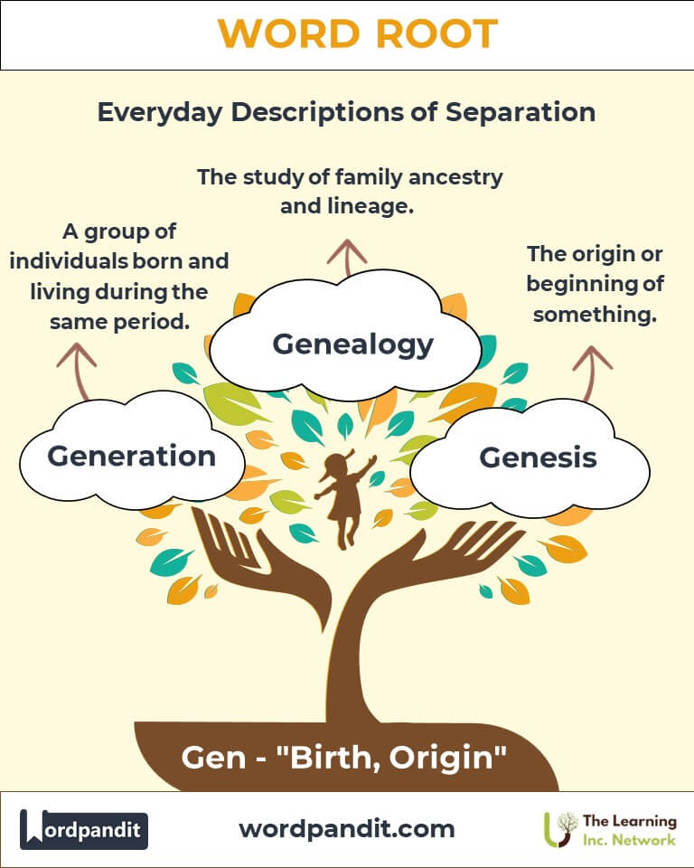 The root "Gen" holds profound cultural resonance. In ancient texts like the Book of Genesis, it signifies the origin of existence. Today, it connects us to our shared heritage through genealogy, inspires creativity through the term "genius," and highlights generational shifts that shape societal progress.