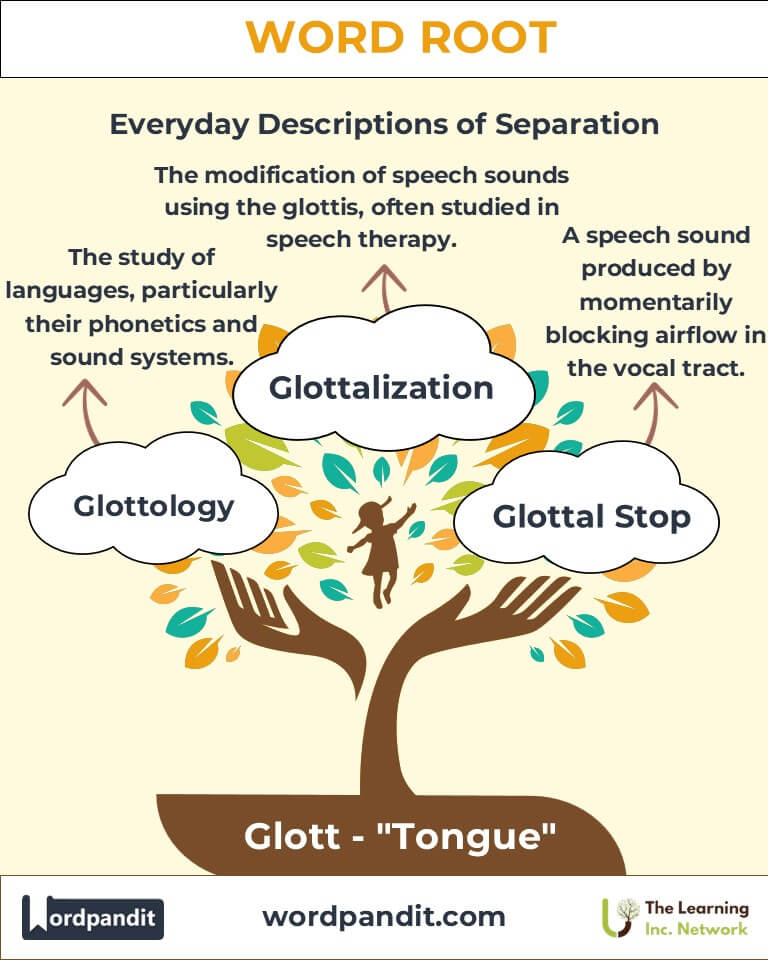 Imagine a conductor (the tongue) orchestrating sounds in a symphony of speech. This visualization ties the root "glott" to its dual role in communication and airflow management.
