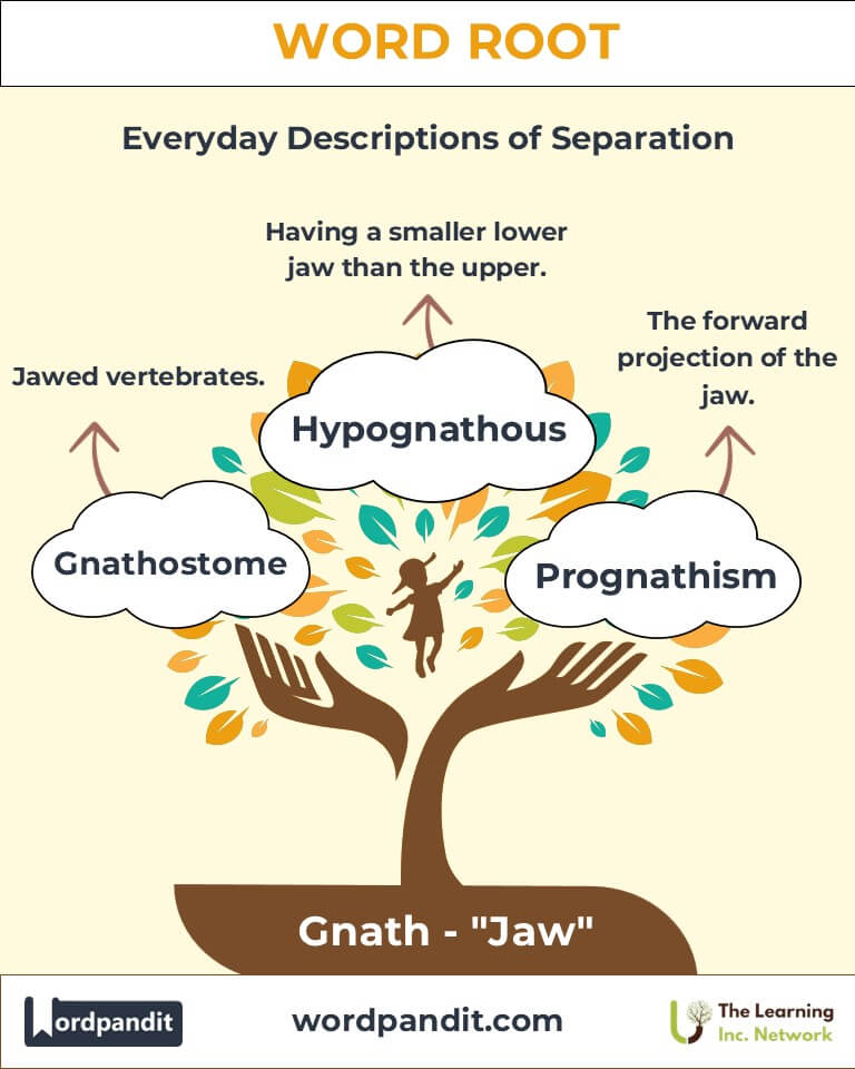 Dive into the fascinating linguistic root "gnath," originating from Greek and meaning "jaw." From descriptive anatomical terms like "gnathic" to evolutionary insights in "prognathous," the root "gnath" unveils the structure and function of this essential feature in humans and animals alike.