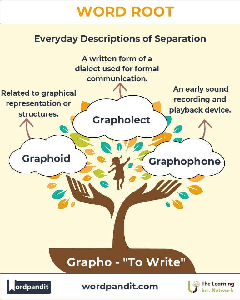 To remember "Grapho," imagine a pen scribbling across a notebook, leaving behind a trail of meaningful words or sketches.