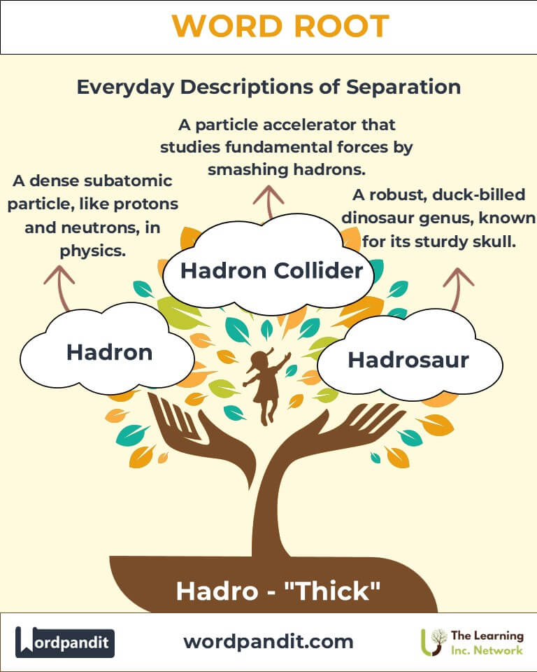 Dive into the fascinating root "Hadro," originating from Greek and meaning "thick." This root forms the foundation of words like "hadron" in physics and "hadrosaur" in paleontology, demonstrating its versatility in describing density and substantiality across disciplines.