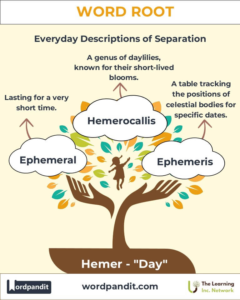 Discover the fascinating role of the root "Hemer," derived from the Greek word hemerā (ἡμέρα), meaning "day." This versatile root finds its way into words that highlight transience, beauty, and time, such as "ephemeral" and "hemerocallis." Learn how "Hemer" weaves the concept of a single day into language, culture, and specialized fields.