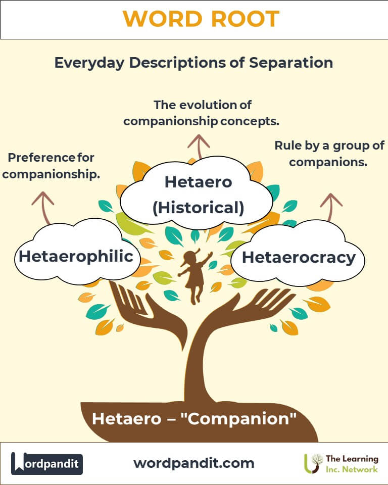The root "hetaero" symbolizes the timeless importance of companionship, from ancient Greek associations to modern studies of collective relationships. By understanding this root, we appreciate the profound role of companionship in shaping human culture and society. Let "hetaero" inspire you to value and nurture your connections, fostering a world enriched by fellowship.