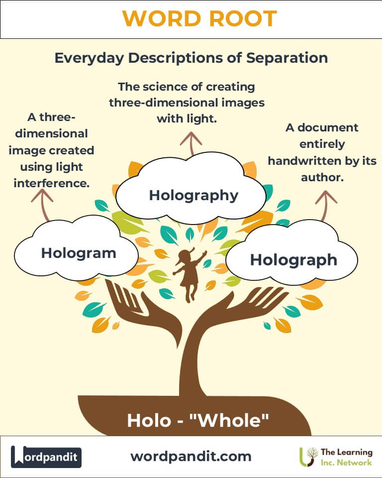 The root "Holo" reflects humanity's quest to perceive completeness. It resonates in spiritual traditions emphasizing unity and in modern technology striving to recreate wholeness through holography. Its historical weight, especially in terms like "Holocaust," reminds us of the need for reflection and remembrance.