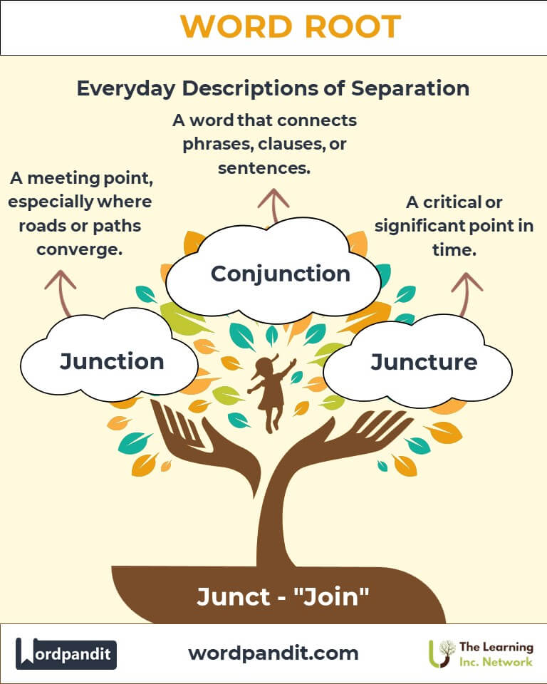 Every day, we encounter the power of connections—whether it’s meeting at a road junction, using conjunctions in writing, or experiencing a crucial juncture in life. The root "Junct," pronounced "juhngkt," stems from the Latin jungere, meaning "to join." Words derived from this root emphasize unity, connection, and interdependence, making "Junct" a cornerstone of communication and structure in both language and life.