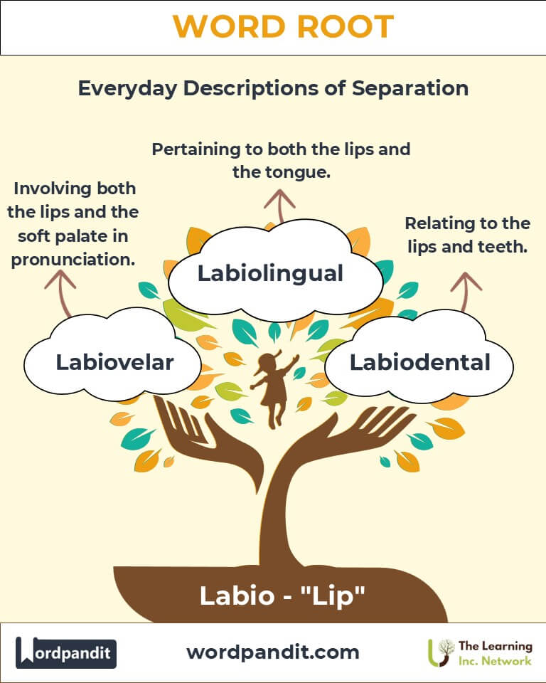 The root "labio" is a linguistic gem, referring to the lips' critical role in articulation, anatomy, and expression. Pronounced "lay-bee-oh," this Latin root serves as the foundation for words related to speech sounds, such as "labial" (produced with the lips) and "labiodental" (involving both the lips and teeth). Its applications span fields like linguistics, phonetics, and medicine, emphasizing its importance in communication and beyond.