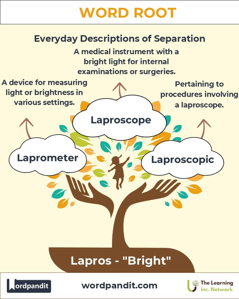 What connects the clarity of a medical instrument and the precision of measurement tools? The answer lies in the root lapros, meaning “bright.” Pronounced lah-pros, this root signifies light and clarity, reflected in its applications in medicine, science, and beyond. From facilitating surgeries with laproscopes to enabling precision with laprometers, lapros illuminates paths in innovation and language.