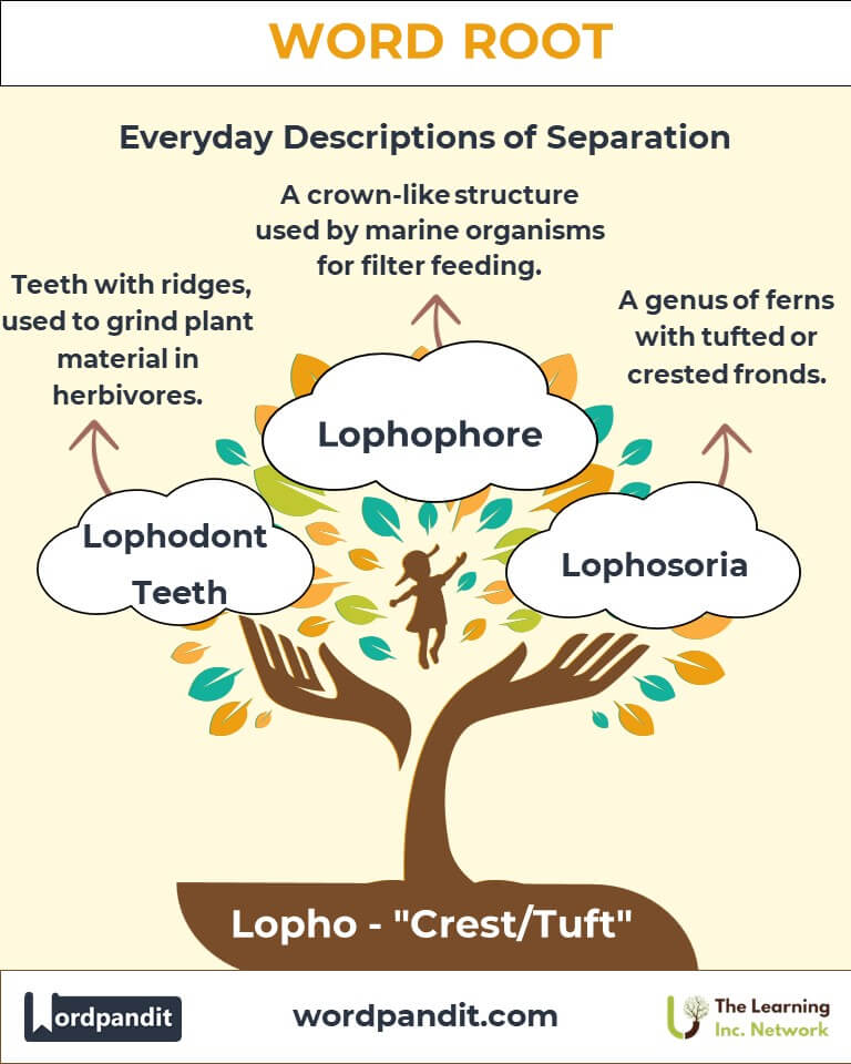 Discover the fascinating world of the word root "lopho," derived from the Greek word lophos, meaning "crest" or "tuft." From biological structures like lophophores to dental formations in lophodont mammals, this root weaves through scientific terminology, showcasing the elegance of natural forms and functions.