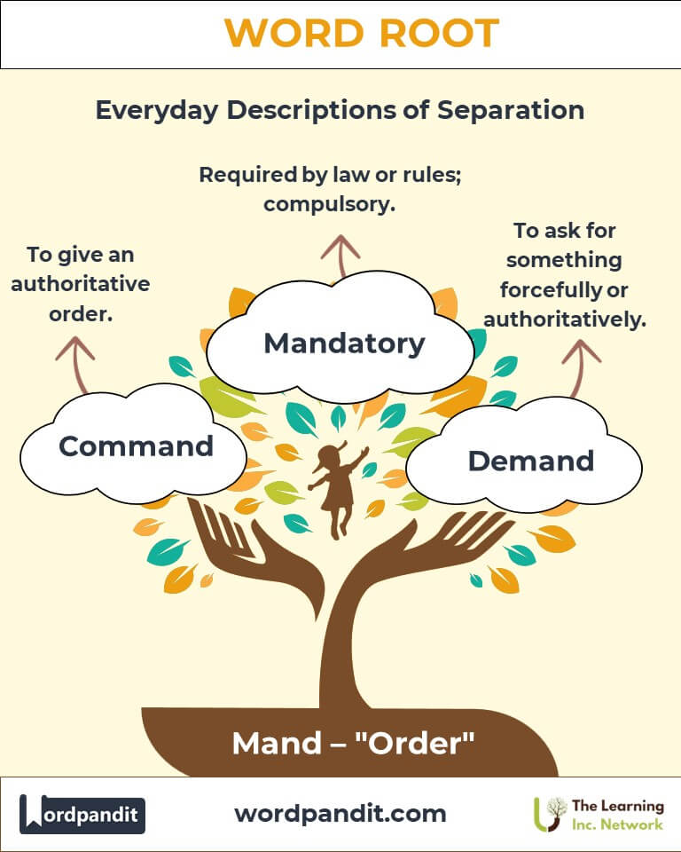Explore the commanding power of the word root "mand," derived from Latin, meaning "order." From everyday commands to mandatory laws, this root is a cornerstone of authority and organization in language and society.