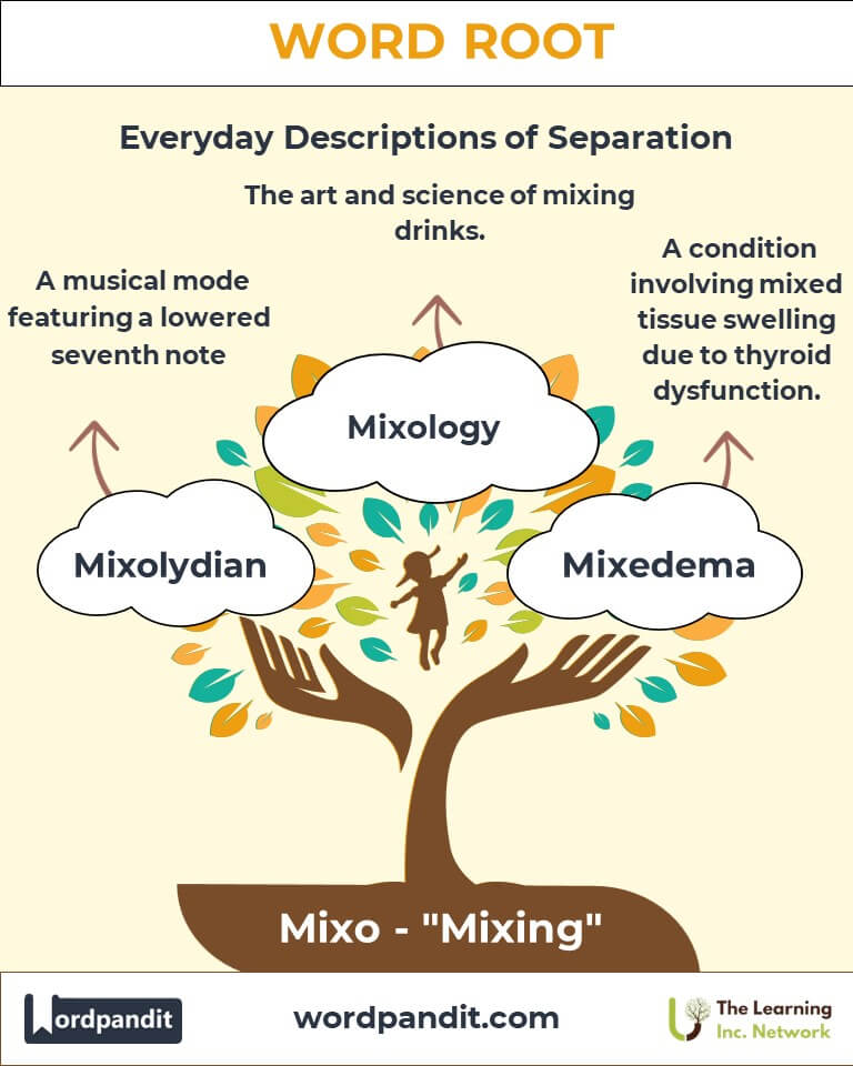 Have you ever wondered how organisms adapt by combining different energy strategies or how mixtures in medicine influence health? The root mixo, derived from the Greek mixis (mixing), embodies this spirit of combination and adaptation. Pronounced "MIK-so," this root resonates in words like "mixotroph," a life form that blends autotrophic and heterotrophic feeding strategies, and "mixedema," a condition marked by mixed tissue changes. Across disciplines, mixo symbolizes the transformative power of integration.