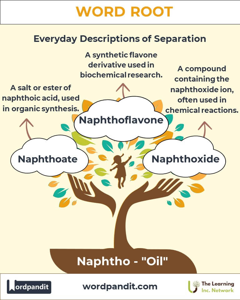 Discover the fascinating journey of the root naphtho, originating from ancient practices tied to natural resources. Meaning "oil," this root has seeped into the lexicon of chemistry and beyond, forming a crucial part of words like naphthalene and naphthol, which carry significant importance in industries ranging from pharmaceuticals to manufacturing.