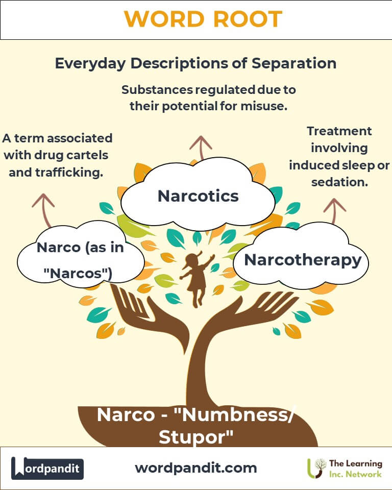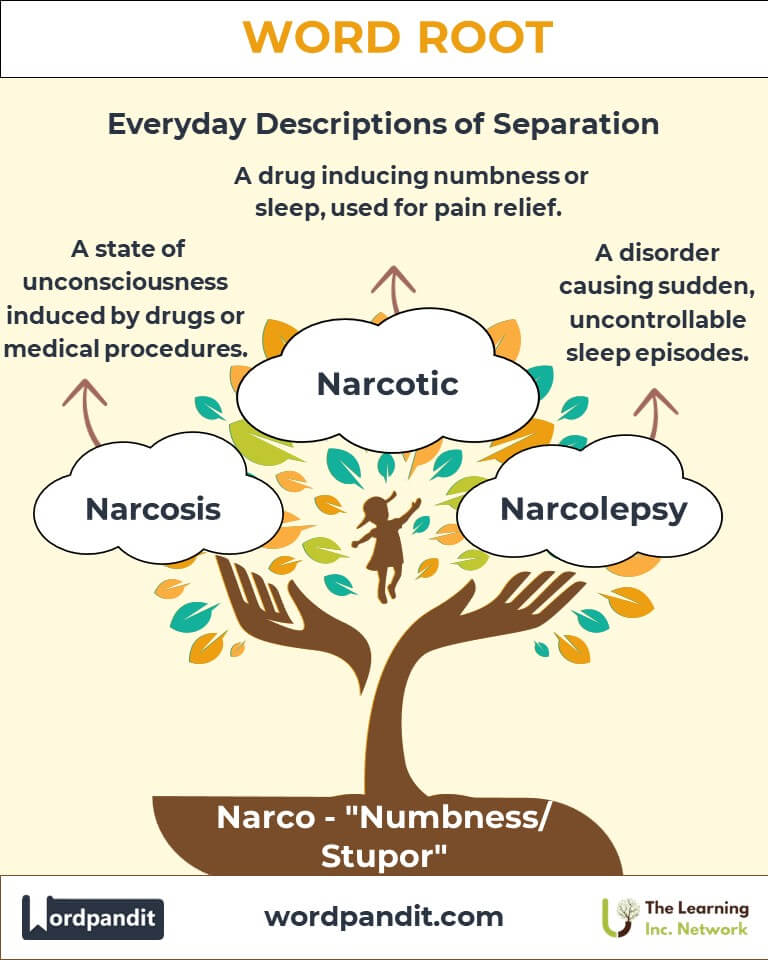 Byline: Explore the intriguing root narco, derived from Greek, meaning "numbness" or "stupor." This root underpins terms that connect to sleep, sedation, and altered consciousness, such as narcotic and narcosis. From medicine to law enforcement, narco influences many fields and continues to shape how we describe states of mind and body.