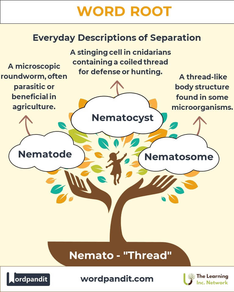Discover how the root "nemato", meaning "thread," weaves its significance through biology and beyond. From the coiling structures of nematodes to the intricate nematocysts of marine organisms, this root threads its way into our understanding of life's complexity and adaptability.