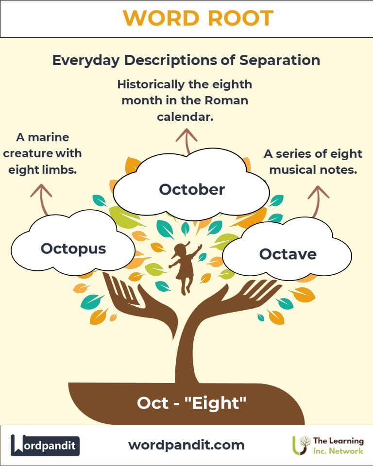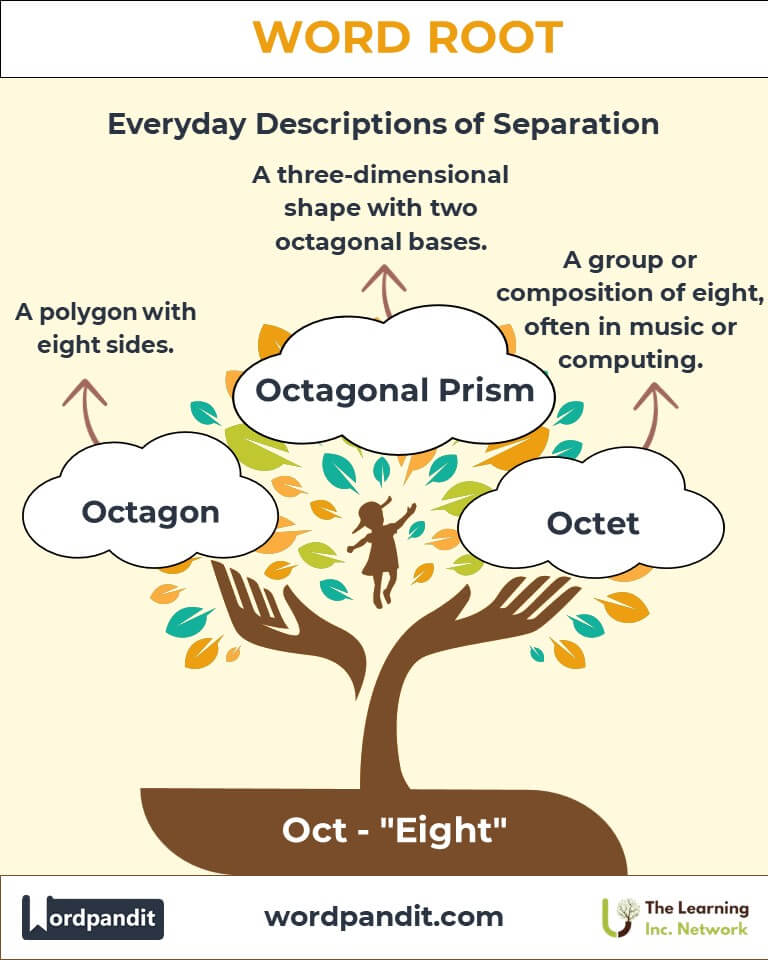 The root "Oct" immediately evokes images of eight-sided wonders and creatures with eight limbs. Derived from Latin octo and Greek oktō, this root represents the number eight and has shaped words spanning mathematics, biology, and culture. From the octopus navigating the ocean depths to the octagon providing structure in geometry, "Oct" highlights versatility and precision.