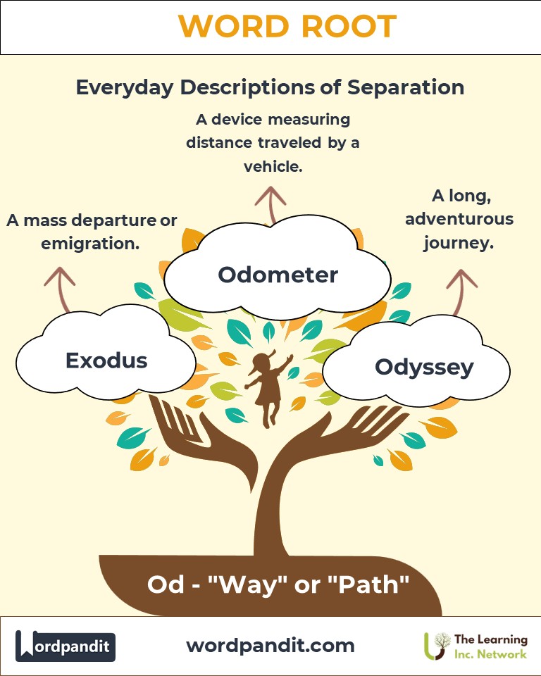 The root "od" symbolizes humanity’s quest for direction and progress. From the Biblical "Exodus" recounting liberation to Homer’s "Odyssey" chronicling epic travels, "od" encapsulates themes of movement, transformation, and perseverance. In modern times, it underscores the importance of structured approaches in achieving goals, reflecting its timeless relevance.