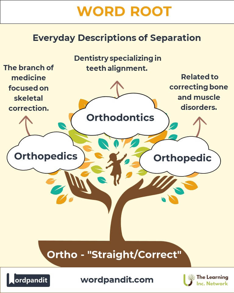 The root "ortho," pronounced "or-thoh," originates from the Greek word orthos, meaning "straight" or "correct." It has carved its significance in language, emphasizing alignment, correctness, and precision. Whether addressing skeletal alignment in orthopedics or proper beliefs in orthodoxy, "ortho" lays the foundation for accuracy and order in various disciplines.