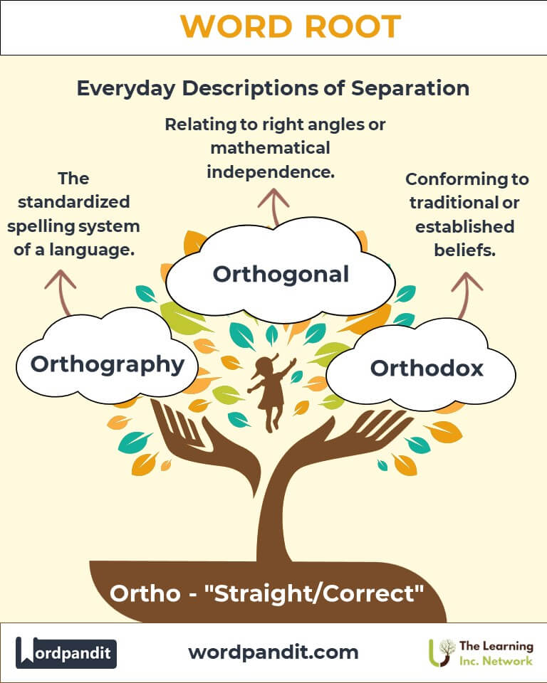The root "ortho" exemplifies the pursuit of correctness and alignment across diverse fields. From straightening bones to preserving traditions, its applications highlight humanity's enduring commitment to precision and truth. As society evolves, "ortho" continues to guide our efforts to stay true and aligned, reminding us of the value of straightness in thought, action, and form.