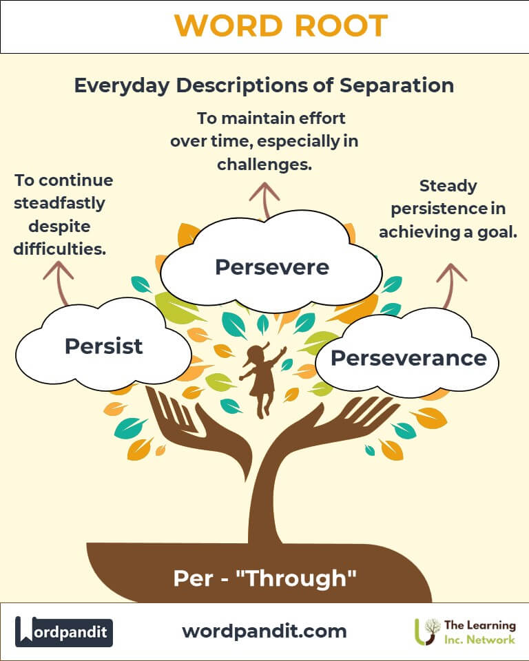 The root "Per" embodies persistence and penetration across cultures. It underscores human resilience, whether in folklore where heroes persevere or in idioms like "persevere to achieve greatness." Its adaptability has allowed it to permeate art, science, and daily life, symbolizing a journey "through" challenges.
