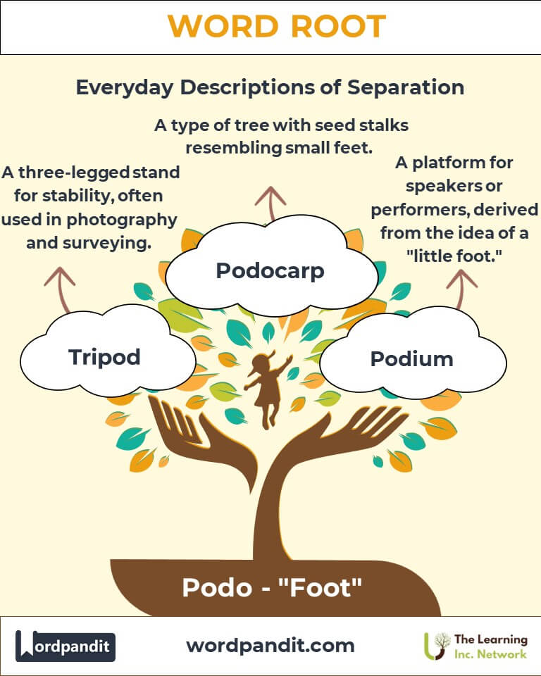Discover the fascinating journey of the root "Podo," derived from Greek, meaning "foot." From terms like "podiatry," which focuses on foot health, to "podocarp," a genus of trees named for their foot-like seed stalks, this root has taken steps into diverse linguistic and practical territories.
