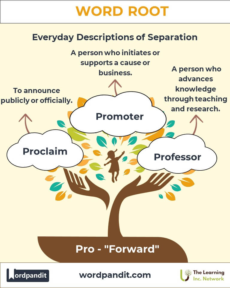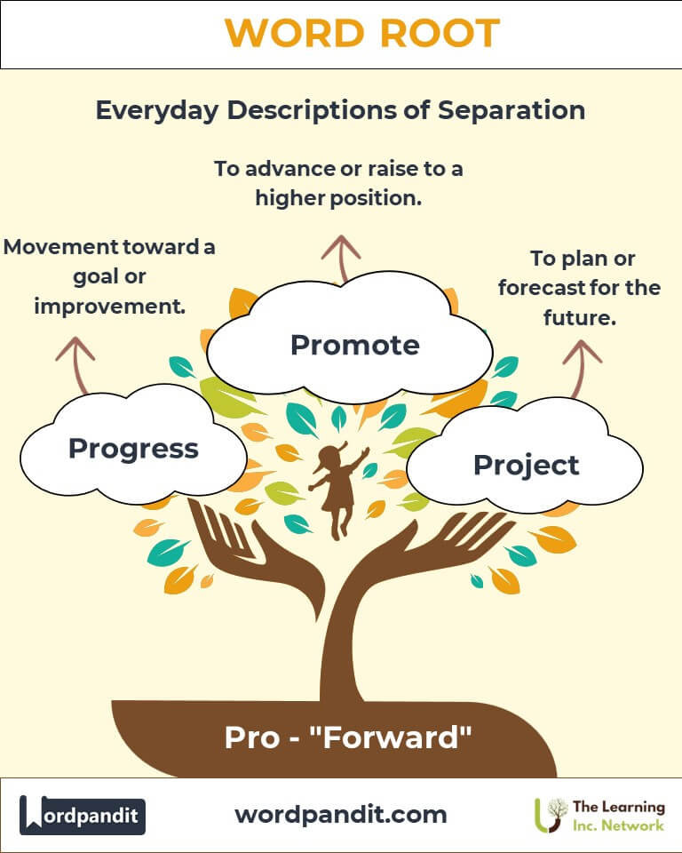 The root "Pro" epitomizes humanity’s spirit of advancement, advocacy, and aspiration. As it continues to shape language and thought, "Pro" remains a testament to our collective drive to move forward. Let this root inspire you to promote progress and project a brighter future.