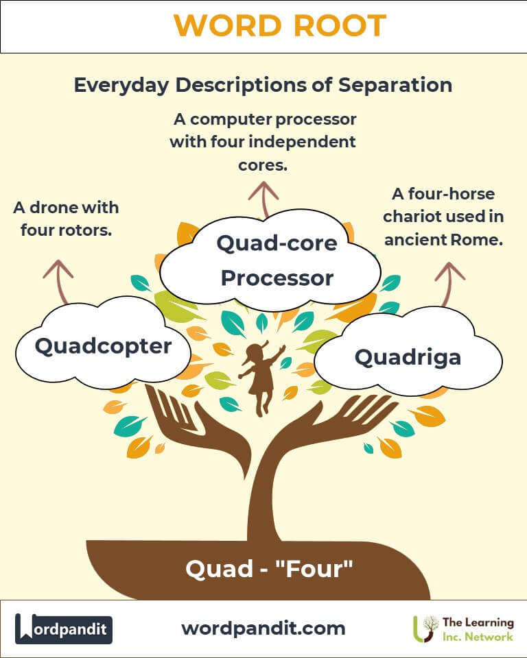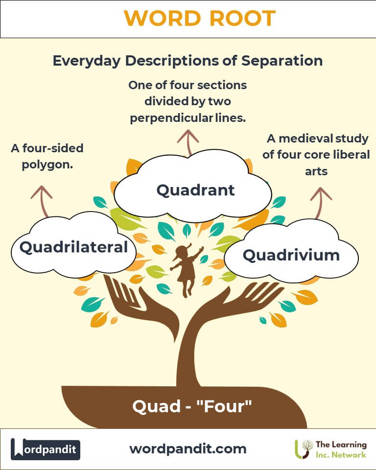 The word root "Quad," pronounced as "kwod," originates from Latin and means "four." This root forms the basis of numerous terms in geometry, sports, and technology, emphasizing the universality of the number four. From the four sides of a quadrilateral to the synchronized movements of a quad squad, "Quad" connects diverse concepts with balance and symmetry.