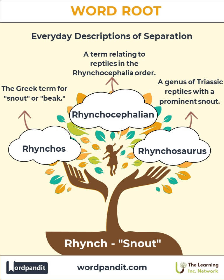 What do birds, reptiles, and ancient fossils have in common? Their connections to the word root "rhynch," meaning "snout" in Greek. Pronounced as “rink,” this root appears in scientific terms describing snouted animals, particularly in taxonomy. From the beak of a bird to the jaw structure of prehistoric creatures, the root "rhynch" provides a linguistic lens into biology and evolution.