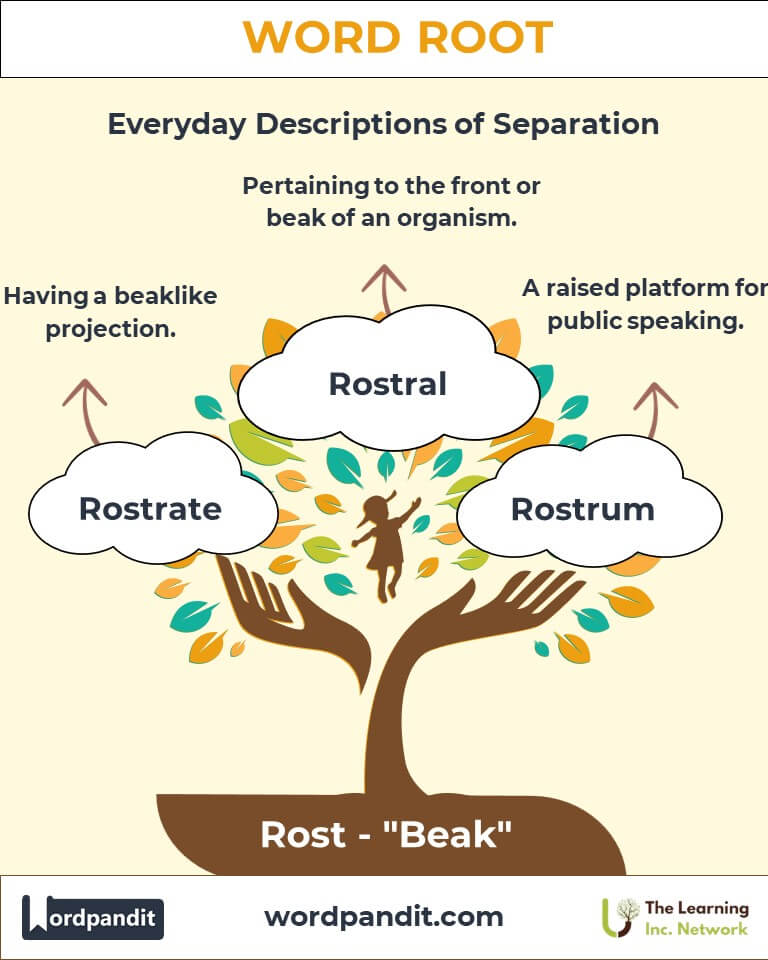 The word root "Rost," pronounced rost, originates from the Latin word rostrum, meaning "beak" or "snout." This evocative root has evolved to represent sharpness and projection, both literally (in anatomy) and metaphorically (in public speaking). From the raised platform of a rostrum to the beaklike structure of rostrate organisms, the root "Rost" has sharpened its impact across diverse disciplines.