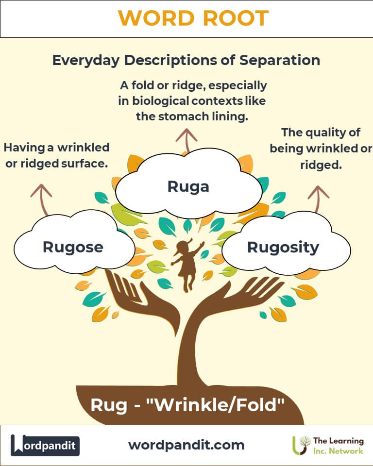 Discover the intriguing versatility of the root "rug," derived from Latin, meaning "wrinkle" or "fold." This root weaves its essence through words like "rugose" and "corrugated," illuminating how physical textures inform language, science, and artistic expression.