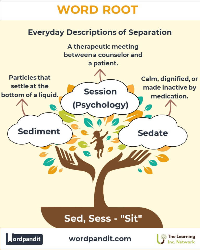 Whether referring to layers of rock that have "sat" undisturbed for millennia or a productive gathering of minds, the roots sed (pronounced sed) and sess (sess) capture the idea of sitting. Derived from Latin, these roots have enriched our language with words that describe stillness, stability, and assembly.