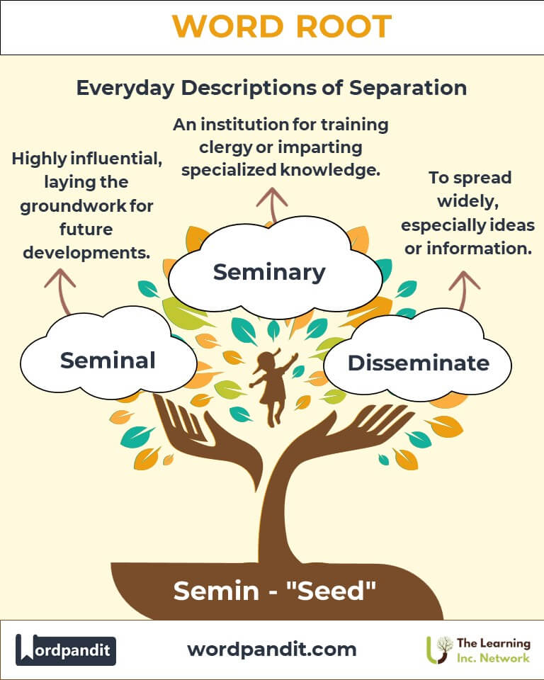 What do words like "seminary" and "seminal" have in common? Both stem from the Latin root "semin," meaning "seed." Just as seeds represent beginnings and potential in nature, this root captures the essence of growth and the spread of ideas in human life. Whether in education, agriculture, or innovation, "semin" weaves a narrative of origins and transformative power.