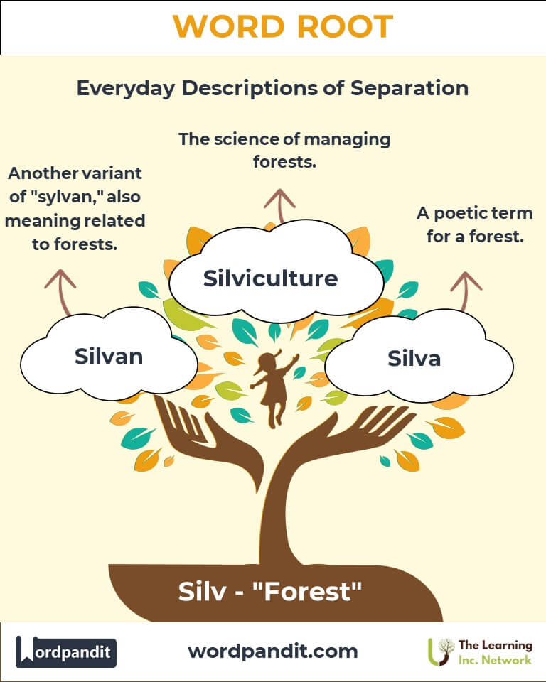 Byline: Discover the enchanting root "silv," derived from Latin, meaning "forest." This root branches into words that celebrate the beauty, mystery, and significance of woodlands, connecting language to nature in profound ways.