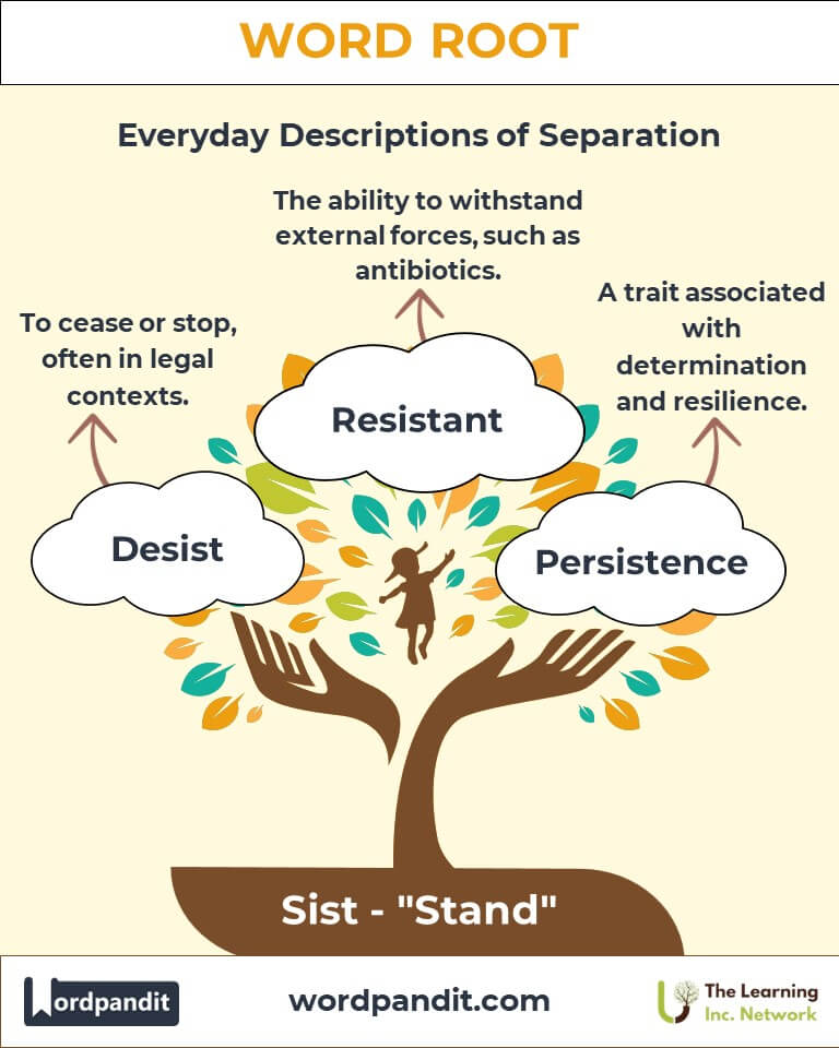 Discover the depth of the word root "sist," derived from Latin, meaning "stand." From assisting a friend to persisting through challenges, this root forms the foundation of words that signify support, endurance, and steadfastness.