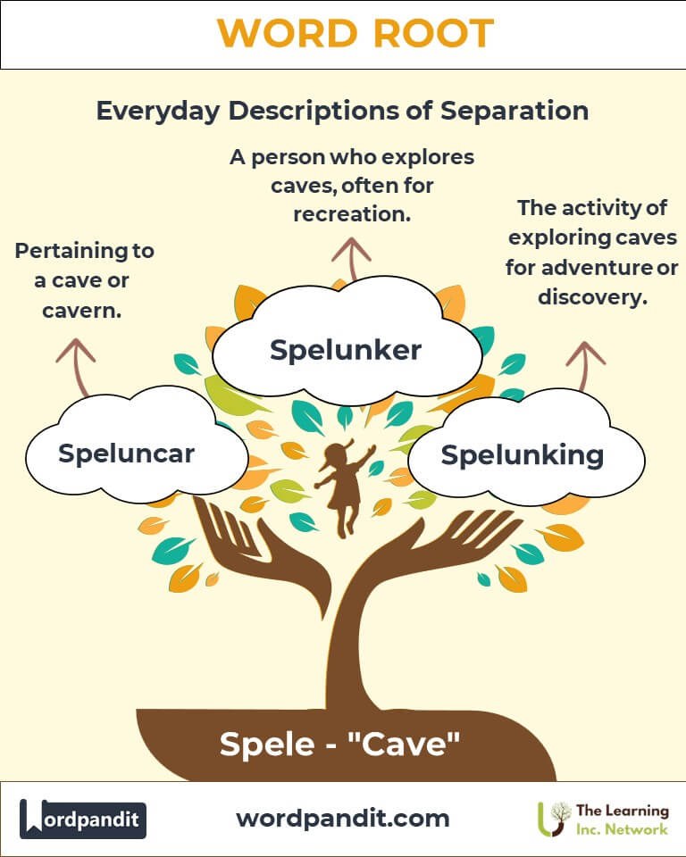 Journey into the depths of the root "spele," derived from the Greek word for "cave." From the science of "speleology" to the adventurous pursuits of a "spelunker," this root invites us to uncover the secrets of the underground world and marvel at its wonders.