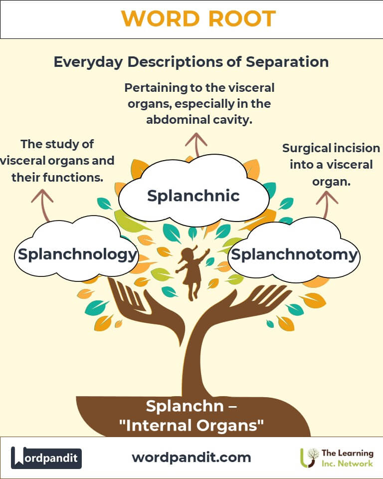 In ancient cultures, the viscera were considered the seat of emotions and instincts. The Greeks believed that the liver, part of the splanchna, symbolized courage. Today, the root’s legacy lives on in idioms like “gut feeling,” connecting our inner organs to intuition and emotional insight.