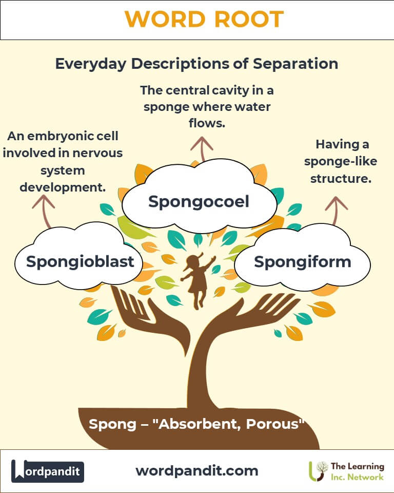 Discover the versatile word root "Spong," derived from the Latin word for "sponge." With meanings tied to absorption, porosity, and flexibility, "Spong" has given rise to terms like "spongy" and "spongiform," symbolizing adaptability and structural intricacy across fields like biology, material science, and everyday language.