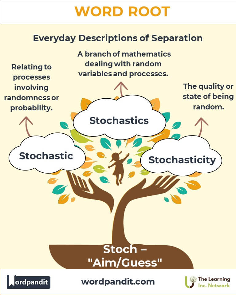 Byline: Explore the versatility and depth of the root "stoch," derived from Greek, meaning "aim" or "guess." From concepts like stochastic processes in probability to stoichiometry in chemistry, this root forms the backbone of terms that govern randomness, precision, and balance across fields of knowledge.